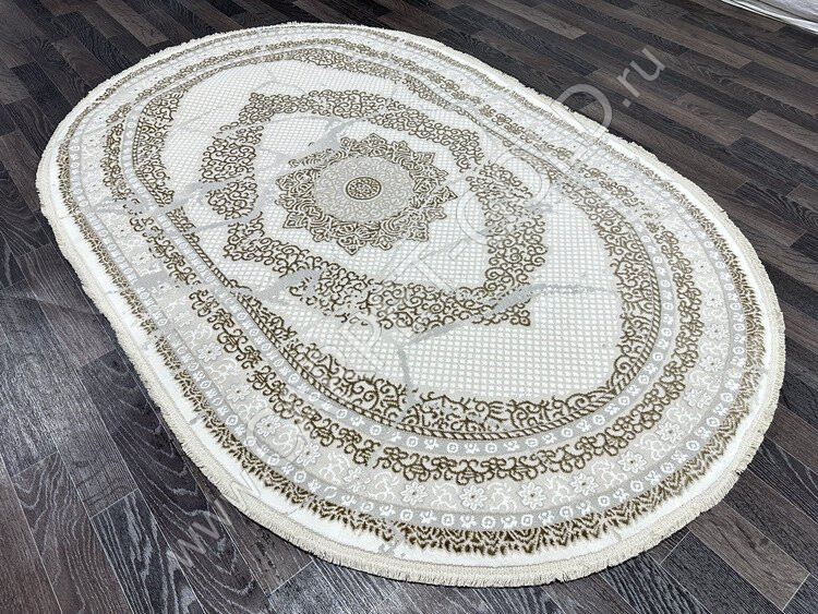 Ковер турецкий 16166-1 Gordion (Полиэстер хит-сет, бежевый, серый) овальный